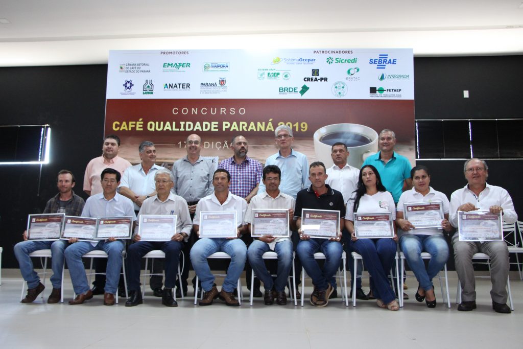No dia 24 de outubro, ocorreu a premiação do Concurso Café Qualidade Paraná 2019 – 17ª edição, na cidade de Ivaiporã, sendo premiadas as categorias café cereja descascado (a polpa do grão maduro é retirada para diminuir o tempo no terreiro) e natural (o grão vai inteiro para secagem). Ao todo eram 120 lotes inscritos e foram selecionados 55 lotes finalistas, sendo premiados os cafeicultores do 1° ao 5° lugar de ambas as categorias.