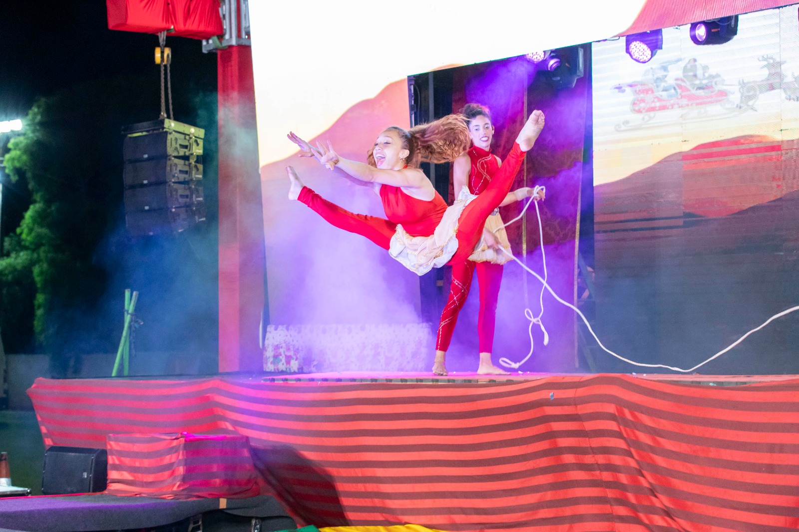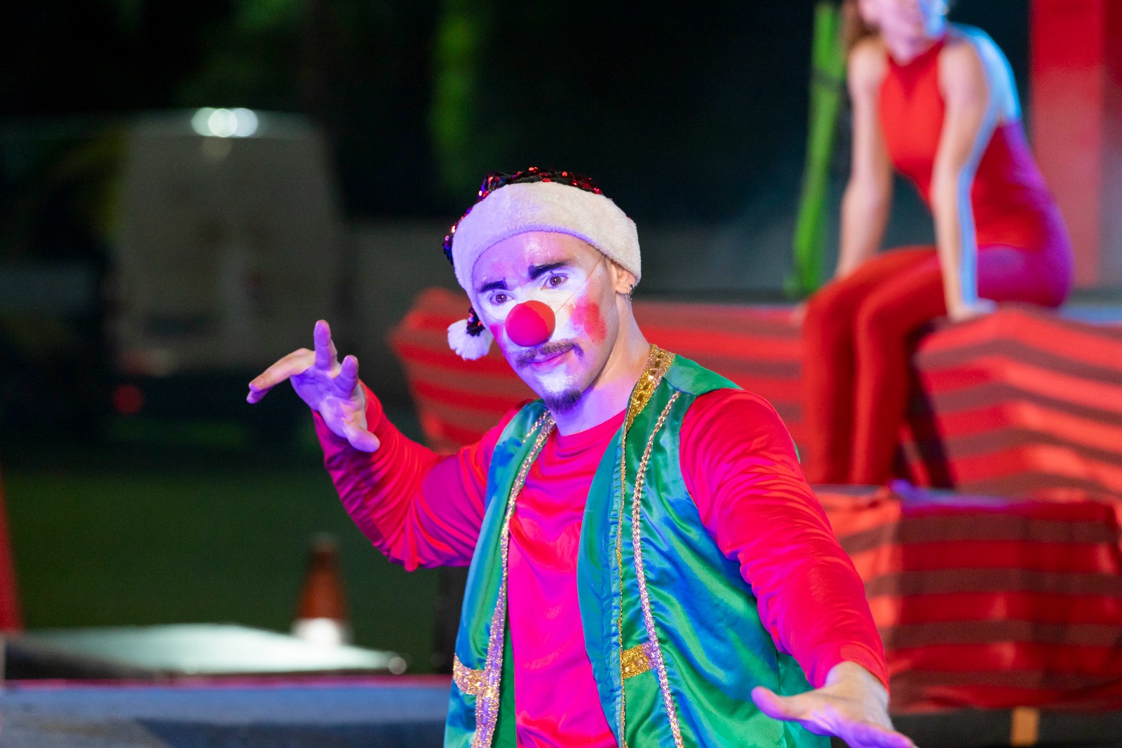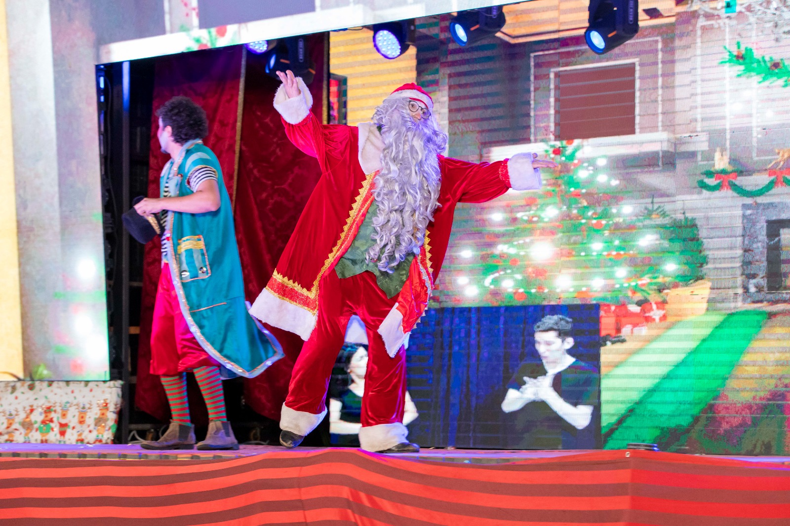 A apresentação foi realizada pela Cia Palco Sobre Lona, de Maringá, e encantou o público ao contar a história de Tina, uma menina que acredita que o Natal perdeu sua essência. Ao lado de Théo, um duende ajudante do Papai Noel, ela embarca em uma jornada para resgatar o verdadeiro significado da data: o amor, a esperança e a união entre as pessoas.