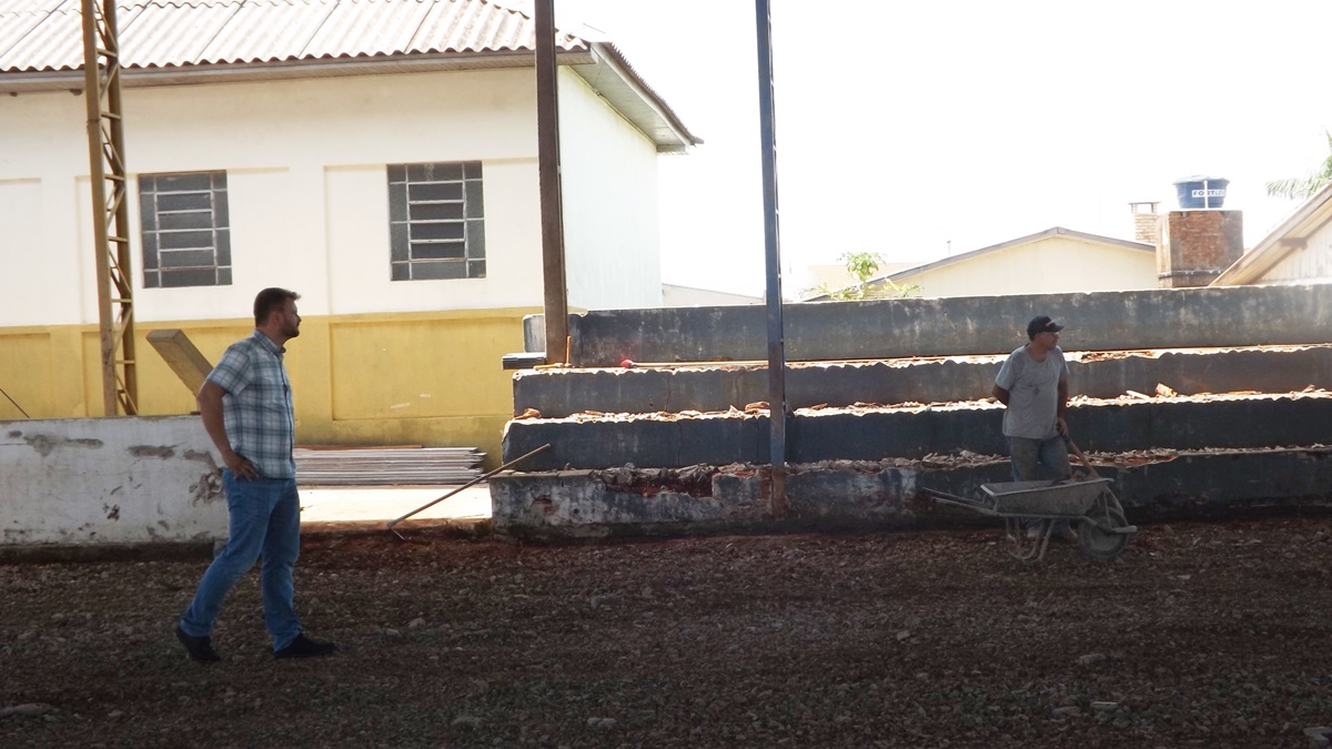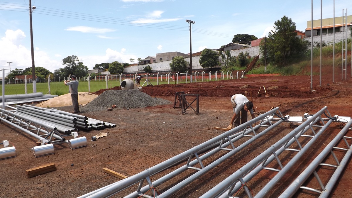 Na tarde dessa quarta-feira (16), o Secretário de Obras de Cambira Riva, esteve visitando os trabalhos de instalação do Projeto Meu Campinho, no Estádio Luiz Mareze e as obras de reforma do Colégio Cezar Lattes.